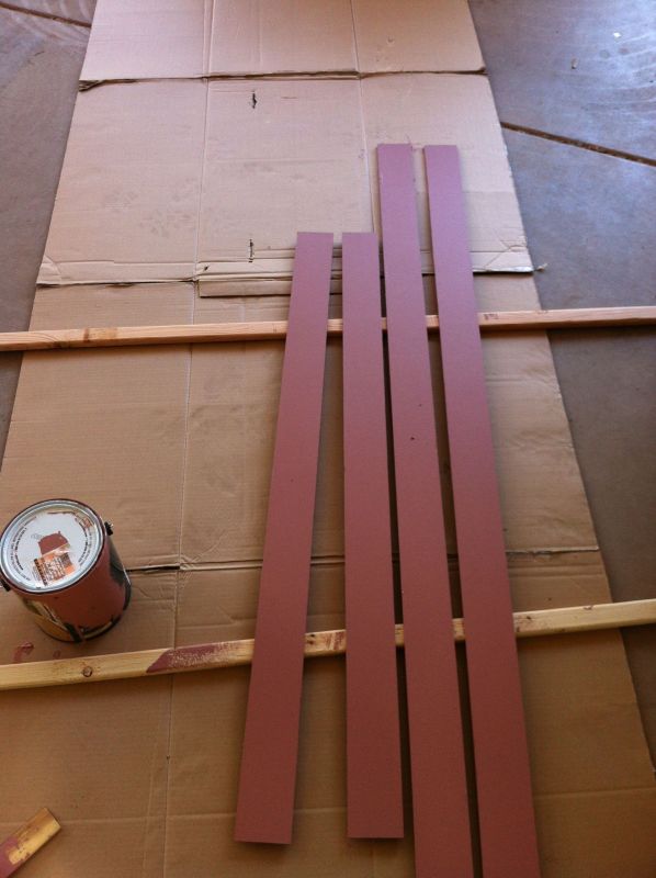I cut and painted strips of the 1/4″ undercarriage ply to fit in the side pockets to support the rigid foam board.