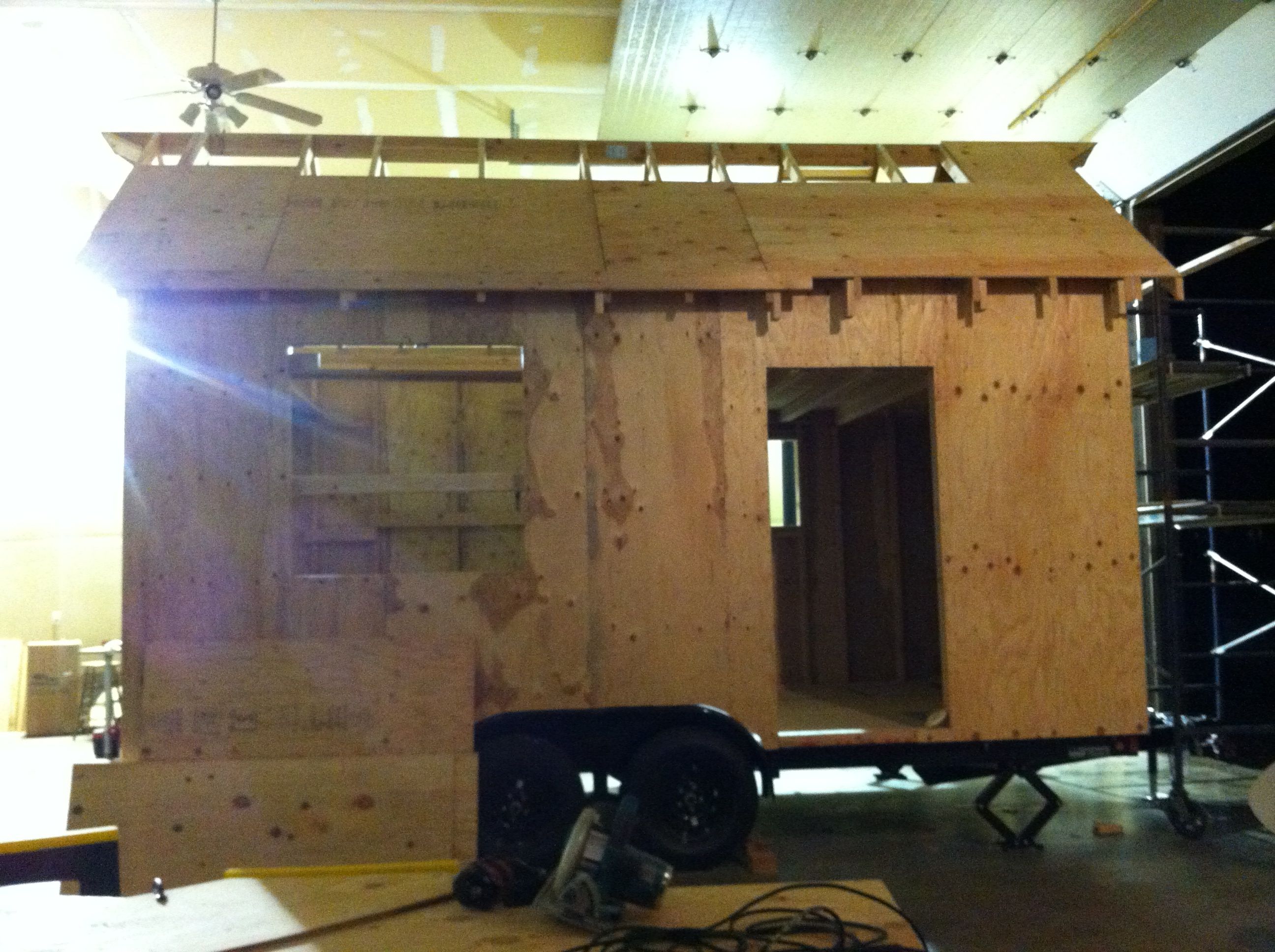 Sheathing complete! Though I was a little sad to lose the open roof feeling, it also feels like I’ve moved into the next phase. Especially with the crazy weather happening outside, it’s a nice feeling to have the space defined and to feel sheltered. It all continues to become more real.