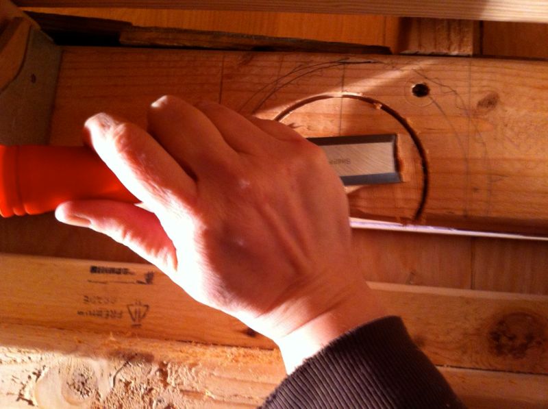 I then had to chisel out the interior to 1/2″ and drill a hole for the cable to come from behind.
