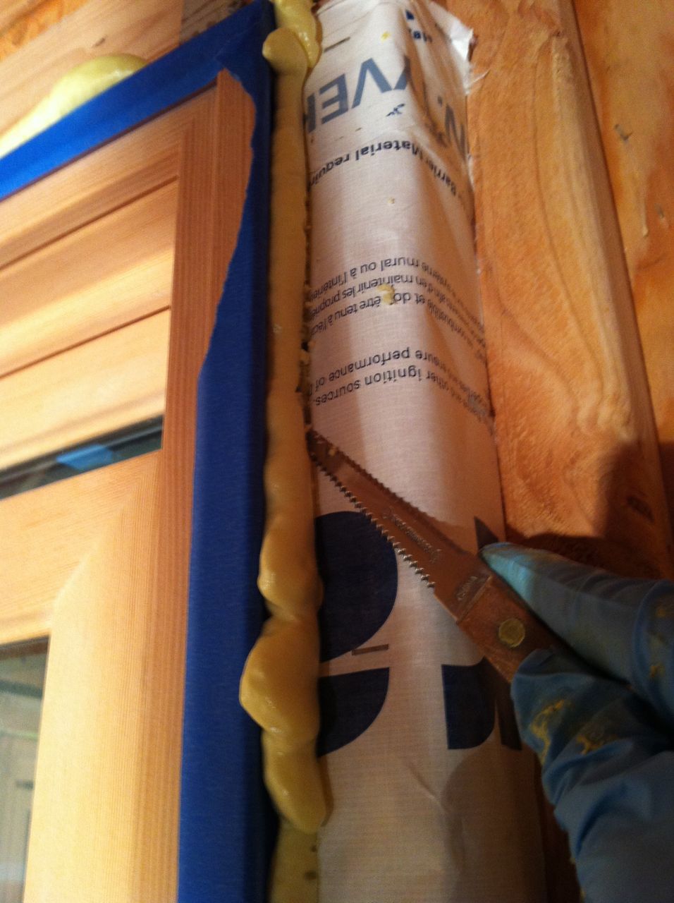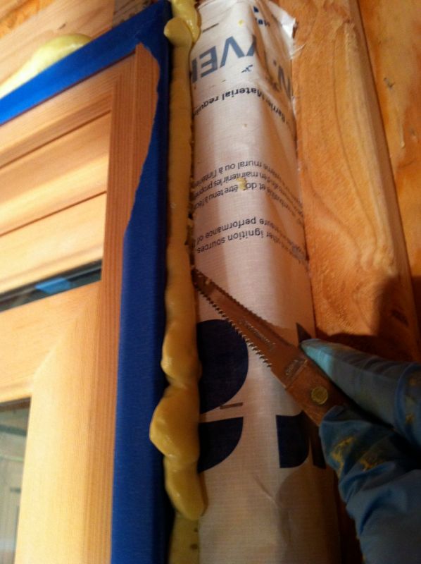 After the foam has cured (8 hrs) you can cut the excess away with a serrated knife. I happened to have a grapefruit knife which was perfect once you flattened the end since it was thin, flat and flexible.