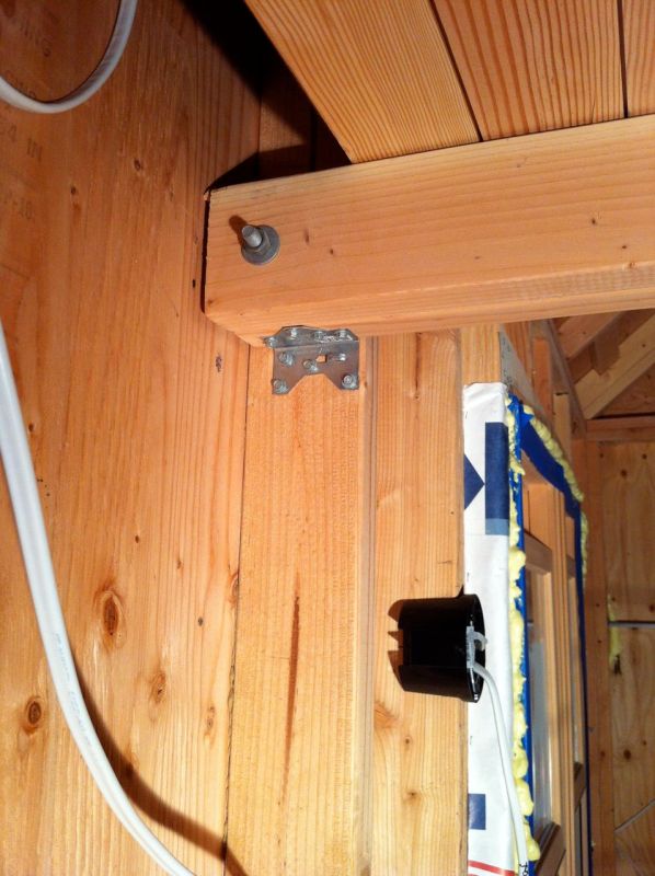 I installed some of my loft joists with hangers and some with bolts. Because I doubled up the 2x4s, I got a little worried the bolts would bend so I added some Simpson braces. Those little puppies can support something like 500 lbs each!