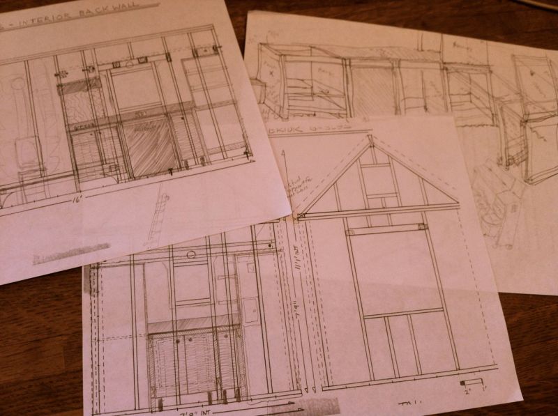 Designing my cabinets and kitchen. I went back to paper and pencil for this, rather than SketchUp. It felt right.