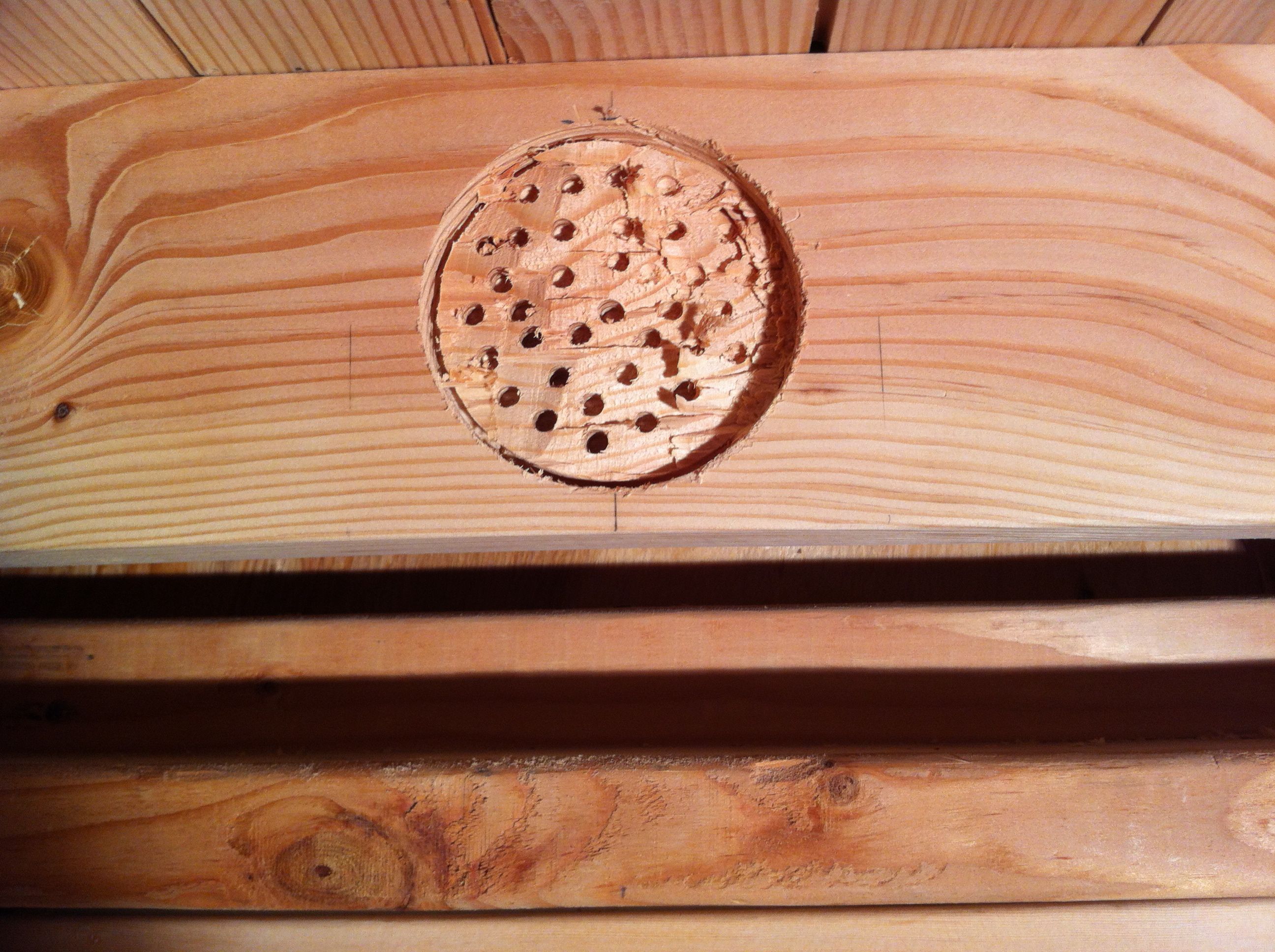 I then chiseled until just the bottom of the drill holes were visible. Here it is in progress…