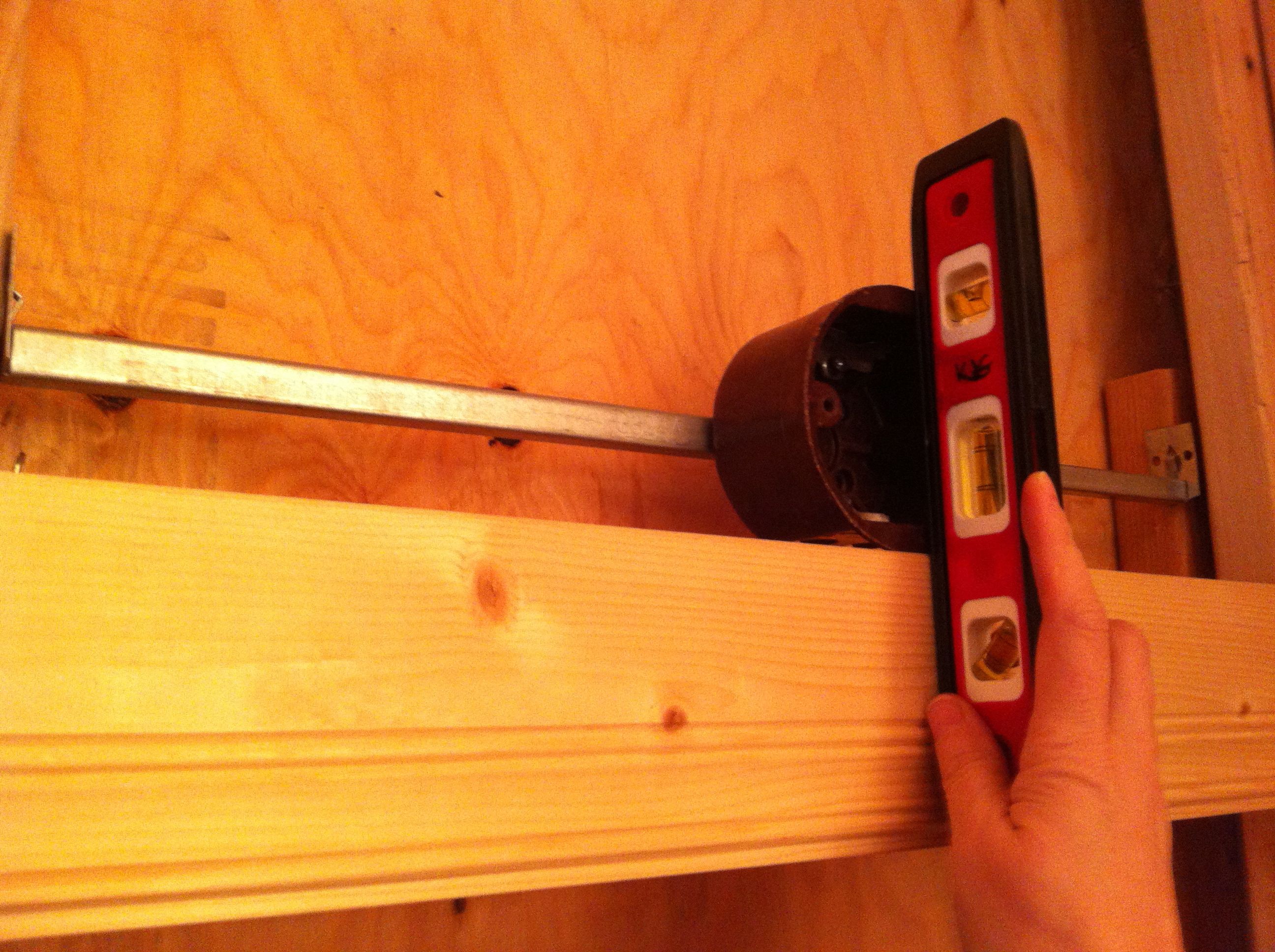 I put up a scrap piece of wall board to help figure out the front to back placement.