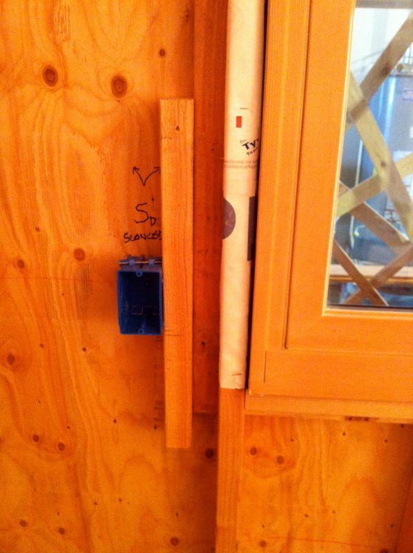 Here us a case where I wanted a switch near a window but wanted to leave room for the window trim plus some wall space. These spacers are also handy when mounting a box near a corner of a room (see next photo, box on the left).