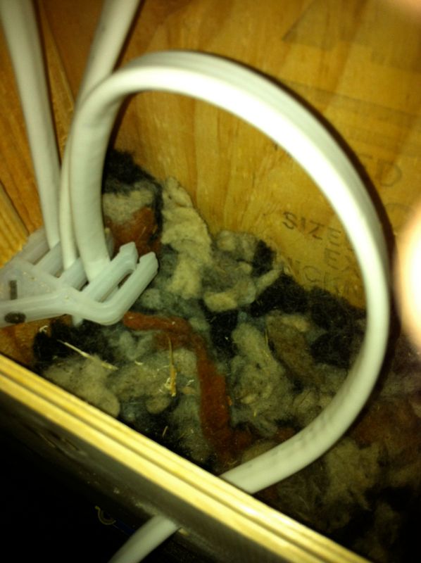 Here is a close-up of a Stack-It. It has an angled nail to secure it to the wall and is about 3.5″ long at its base so the wires are automatically positioned in the center of the stud. You just slide the cable in one of the slots. Its not a tight hold but sufficient to keep it in place.