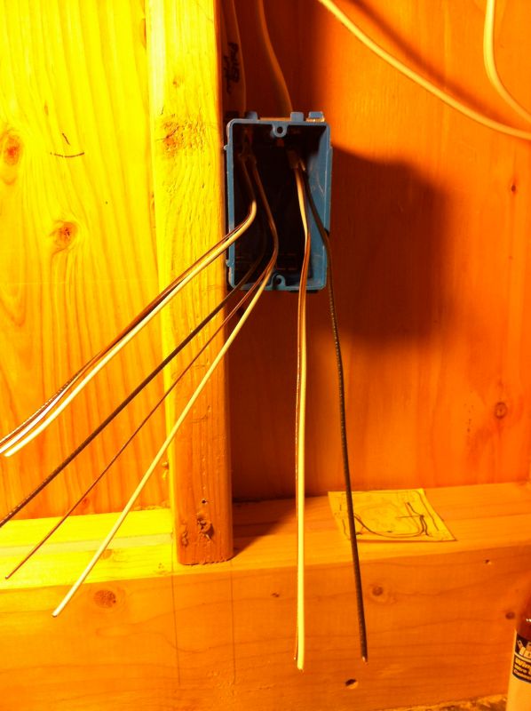 The outer plastic coating and the paper sheathing around the wires is carefully removed with a utility knife. Leave about 1/4″ sleeve of sheathing where it enters the box.